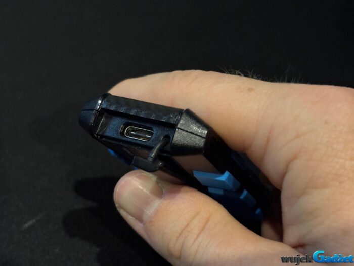 SC735 to minimalistyczny gadżet, który z łatwością mieści się w kieszeni koszuli. Złącze USB-C jest wysuwane, więc nie trzeba nosić dodatkowych kabli. Obudowa jest lekka, matowa, a kolor niebieski nadaje jej nowoczesnego charakteru.