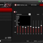 Po jego zainstalowaniu otrzymujemy dostęp do profili SBX, są to predefiniowane ustawienia dźwięku, przystosowane do danego rodzaju rozrywki: muzyka, film, gry. Możemy też ręcznie edytować poszczególne komponenty: surround, crystalizer, bass, smart volume, dialog plus. Do dyspozycji mamy także korektor, który również ma predefiniowane ustawienia np. rock, pop, flat, oraz można wszystkie częstotliwości ustawiać ręcznie. Następną funkcją jaką możemy konfigurować jest CrystalVoice. Odpowiada ona za mikrofon i pozwala na dodanie do naszego głosu efektów by brzmiał np. jak ork, czy elf. Możemy też regulować głośność mikrofonu i włączyć redukcję hałasów otoczenia. Ostatnie funkcje to możliwość sprawdzenia konfiguracji słuchawek, w przypadku EVO ZxR jest to dźwięk 7.1, oraz mikser, w którym ustawiamy balans i głośność.