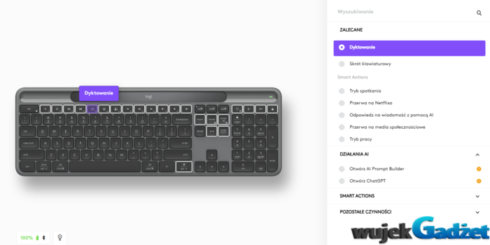 K980 współpracuje z aplikacją producenta (Logi Options / Options+), która pozwala mapować klawisze, przypisywać funkcje dodatkowe i personalizować działanie AI Launch Key. To przydatne, jeśli lubisz dopasowywać sprzęt do workflow. Konfiguracja jest intuicyjna i działa płynnie.