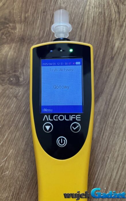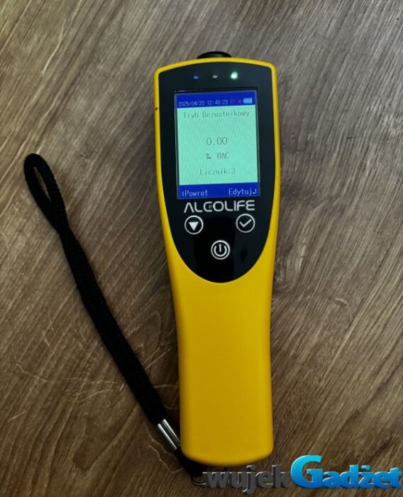 Warto też wspomnieć o funkcji automatycznego wyłączania, która aktywuje się po trzech minutach bezczynności. Jest to niezwykle przydatne rozwiązanie, które oszczędza baterię i przedłuża żywotność urządzenia. Użytkownik nie musi pamiętać o wyłączaniu alkomatu po każdym użyciu — urządzenie zadba o to samodzielnie.