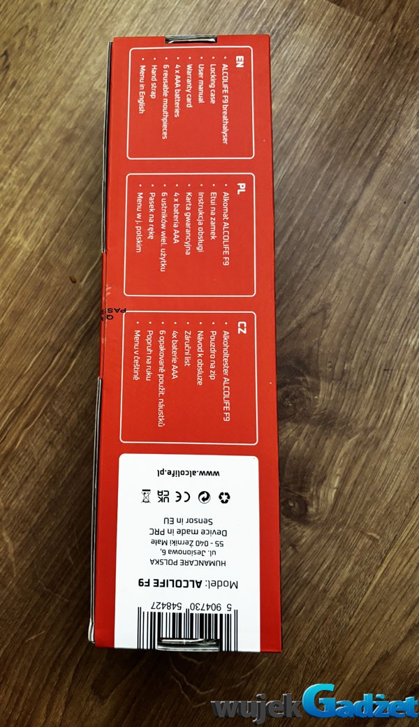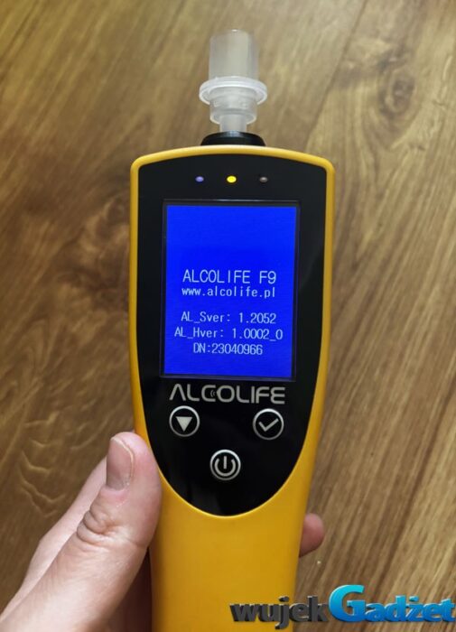 ALCOLIFE F9 prezentuje się nowocześnie i solidnie. Obudowa wykonana z trwałego tworzywa ABS zapewnia odporność na uszkodzenia mechaniczne, co jest istotne w przypadku częstego użytkowania. Ergonomiczny kształt sprawia, że urządzenie dobrze leży nam w dłoni, a intuicyjny układ przycisków ułatwia obsługę.