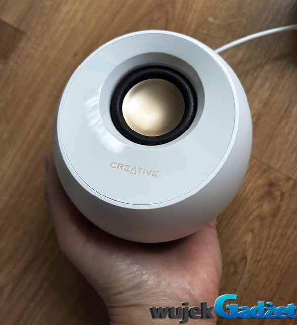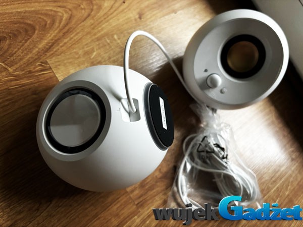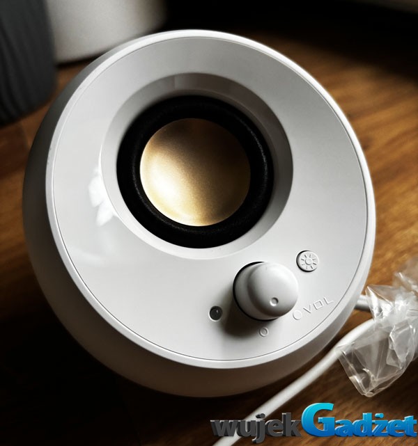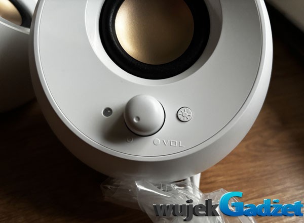 Creative Pebble SE są bardzo proste w obsłudze – wystarczy podłączyć je do portu USB (do zasilania) oraz do wyjścia słuchawkowego (jack 3,5 mm). Pokrętło głośności znajduje się na prawym głośniku i działa płynnie.