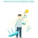 Do zestawu została dołączona instrukcja krótkiej instalacji wzmacniacza. Możemy się z niej dowiedzieć, że konfiguracji można dokonać na 3 sposoby. Poprzez stronę www, aplikację Tether a także za pośrednictwem przycisku WPS w naszym routerze. Przedstawimy wybraną formę konfiguracji repeatera – poprzez wygodną aplikację Tether.