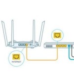 Z tyłu routera u góry możemy zauważyć kolejne dwie anteny, dodatkowe otwory wentylacyjne a poniżej tych otworów – 3 złącza Ethernet i 1 złącze Internet, przycisk WPS i RESET i wejście dla zasilacza.
